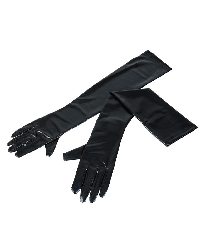 Hanskene er laget i elastisk wetlook-materiale som sitter tett og former seg etter armen uten å føles klamme. Du får god bevegelighet samtidig som de holder stilen. Stoffet har akkurat nok stretch til å være både komfortabelt og sexy på én gang.