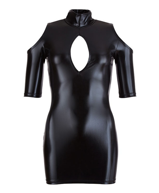 Hva tenker du om å være ekstremt sexy? Denne wetlook minikjolen fra Cottelli Collection er så tettsittende at formene dine bobler frem. Den dype, runde cutouten over brystet trekker blikket dit du vil ha det, mens de åpne skuldrene gir en sexy, men stilren vri. Det glinsende, sorte stoffet gir en hot wetlook-effekt som får andre til å bli gale.