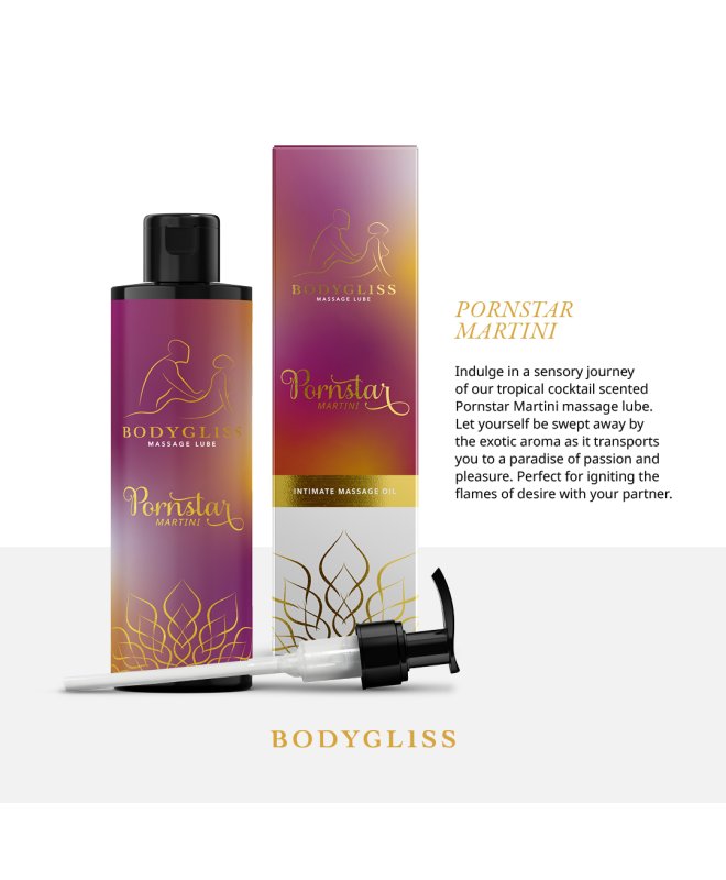 Hvorfor starte rett på sak når du kan gjøre forspillet til hovedretten? BodyGliss har fanget duften av favorittdrinken din, den meget deilige Pornstar Martini, i en flaske som tvinger dere til å bruke hendene overalt. Dette er en 2-i-1-opplevelse som starter med lange, glatte strøk over huden og ender akkurat der dere vil. Den praktiske pumpen gjør at du kan fylle på med mer glid uten å avbryte rytmen eller søle til sengetøyet.
