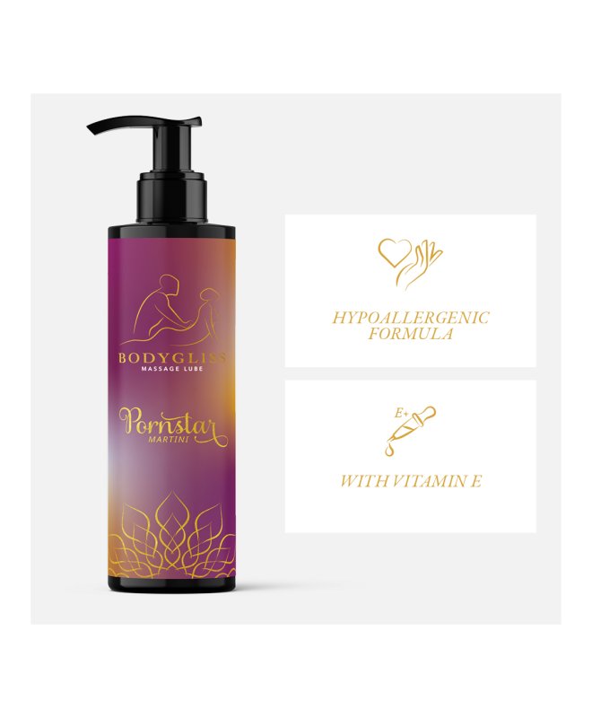 Glem alt som heter kliss eller glidemiddel som forsvinner etter to minutter. BodyGliss er basert på høykvalitets silikon som gir en ekstremt langvarig glid, slik at dere kan holde på så lenge dere orker. Formelen er beriket med Vitamin E som etterlater huden din silkemyk og ferdig pleid etter akten. Den forførende duften vekker sansene og gjør hver berøring litt mer intens og mye morsommere.