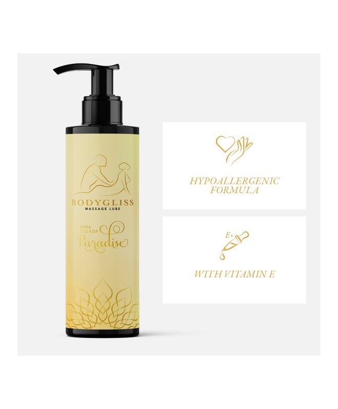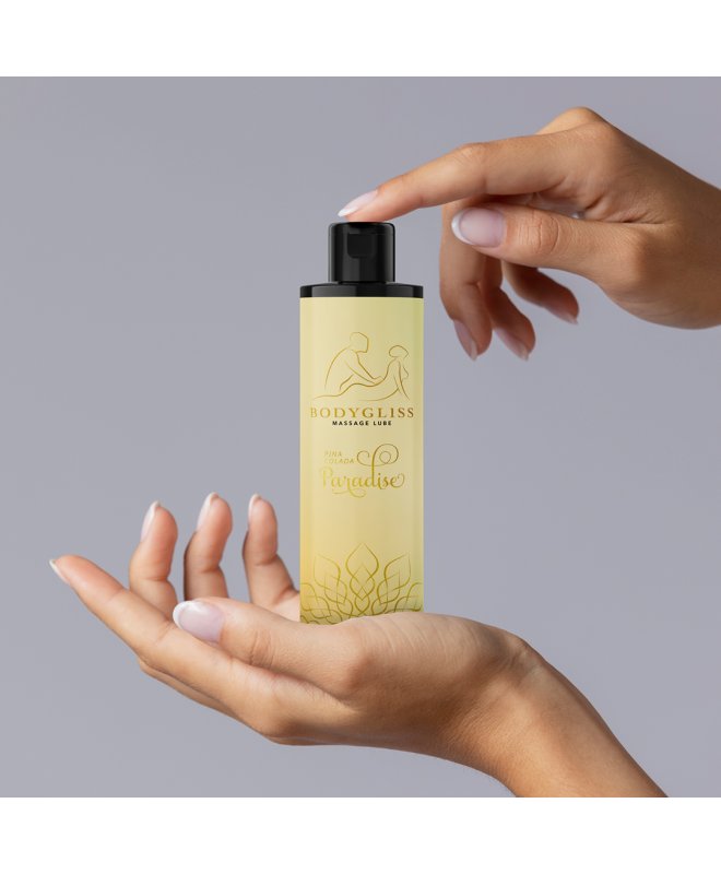BodyGliss Cocos & Rum blander kokos og rom i en duft som skaper tropisk stemning fra første strøk. Start med å smøre inn partneren for varm kroppsmassasje, før dere går rett over til intime øyeblikk med samme glid – uten kliss eller behov for å bytte produkt. Den silikonbaserte formelen holder lenge, pleier huden med vitamin E så den føles myk og fresh etterpå, og den praktiske pumpen på 150 ml doserer akkurat passe mye uten søl.