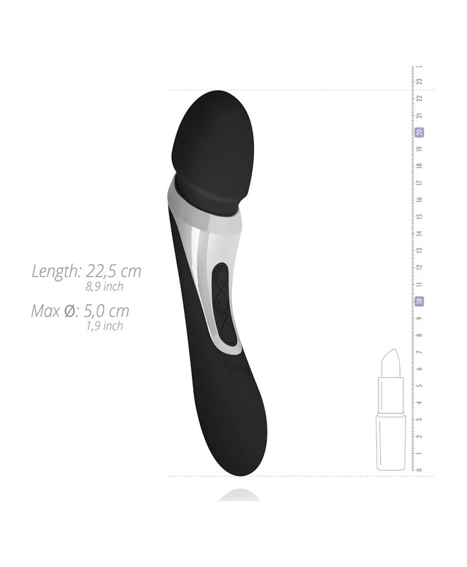 Det er en motor i begge ender som kan styres separat med de to trykknappene i midten. Motorene har 7 vibrasjonsmønstre, slik at du kan tilpasse staven etter dine egne preferanser.