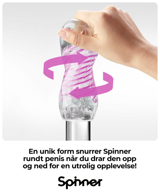 Tenga Spinner er en onanihylse uten om det vanlige - et unikt design gjør at den myke hylsen snurres rundt penis når du drar Spinner opp og ned. Den passer alle størrelser, er enkel å bruke både alene og med en partner og den er helt lydløs!