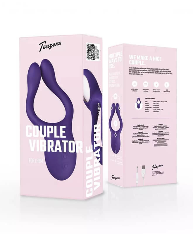Teazers multiverktøy kan brukes på mer enn 10 ulike måter og du vil få med flere tips i pakningen. Teazers multiverktøy for par har én vibrator i hver "arm" noe som gjør den ekstra intens og gir en uvanlig presis stimulering av de mest følsomme punktene. Den er dekket i silkemyk silikon, kan brukes i dusjen (sprutsikker) og har 10 ulike vibrasjonsmoduser. Teazers har god batteritid og kort ladetid, lager lite støy og har en veldig god motor som gir heftige vibrasjoner.