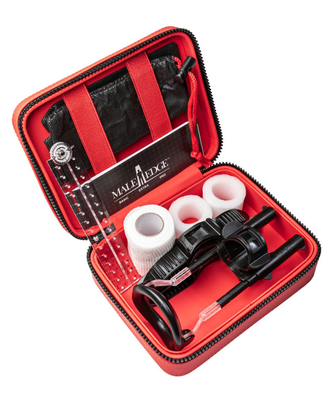 Male Edge Pro inneholder alt du trenger for å komme i gang med treningen. Du får med selve Male Edge-verktøyet, pluss en flott oppbevaringseske, lengdemåler og en gummistropp som holder penis på plass når du trener. Alt du trenger å gjøre er å følge treningsprogrammet så vil du merke resultater etter få uker!