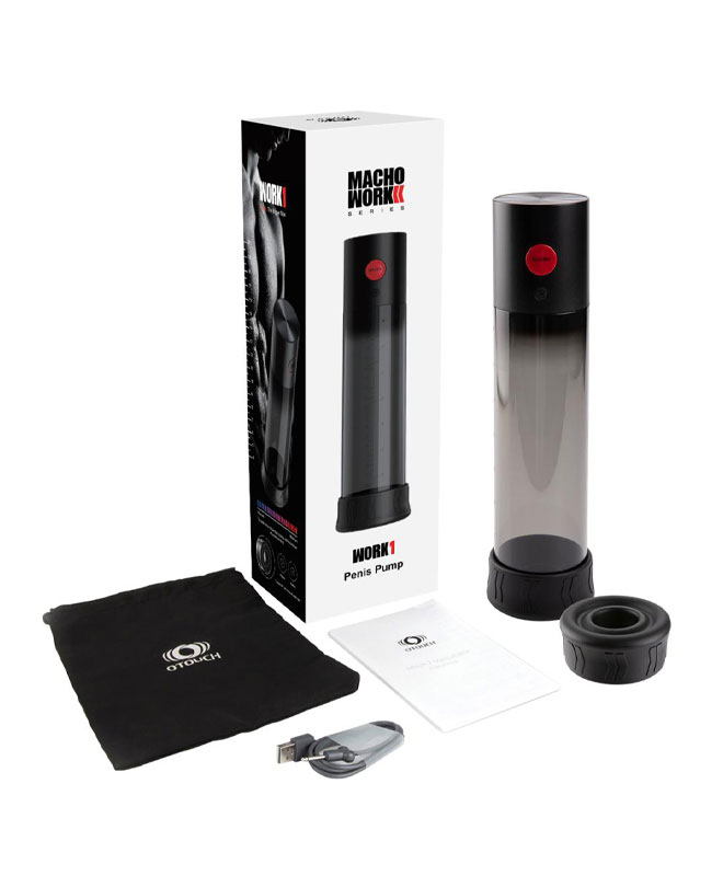 Nyt en hardere og lengre ereksjon med Macho Work 1 fra OTouch! Denne automatiske pumpen har en gjennomsiktig sylinder med størrelsesmarkeringer slik at du kan følge med på fremgangen din. Pumpen kommer med 2 tetningsringer på 26 mm og 32 mm så det er alltid en som passer perfekt.