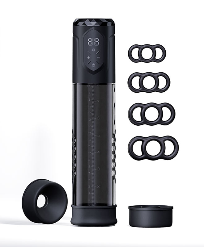 Velg mellom flere åpningshylser for perfekt passform, og bruk de medfølgende penisringene for å holde alt på plass lenge etter at pumpen er tatt av. Du trenger ikke ha ereksjonsproblemer for å ha glede av denne. Du trenger bare lyst til å ta alt ett steg lenger!