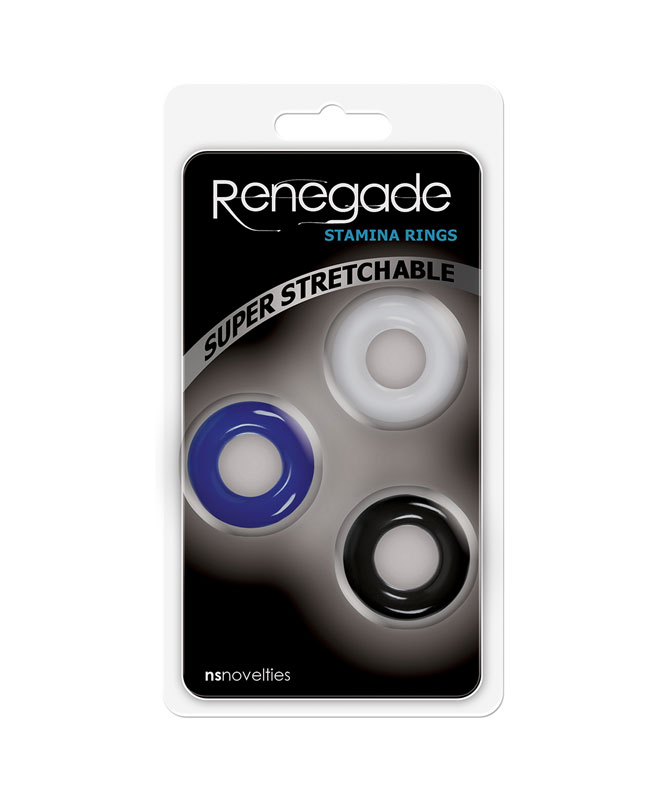 Renegade Stamina Rings er et sett med 3stk super stretchy penisringer laget av TPE, designet for maks ytelse og variert lek på soverommet (og over alt ellers).
