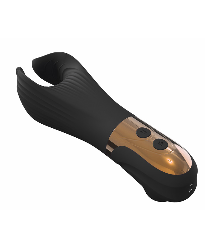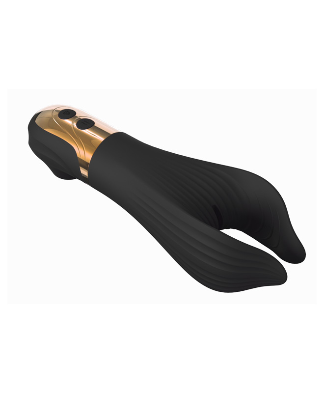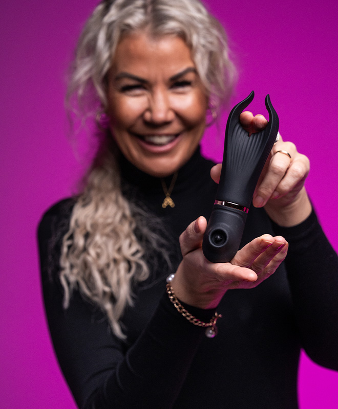«Jeg er så stolt over å kunne presentere noe helt nytt til par! Ikke bare gir den en helt unik følelse for mannen, men den har også flere funksjoner som gjør den til vår mest spennende parvibrator. Tapping-effekten gir en intens følelse når du bruker den til klitorisstimuli, men mot mannens streng gir den en følelse han nok aldri har kjent maken til. Dette er et multiverktøy til par som liker litt av alt og som vil ha en ekte wow-opplevelse! »!