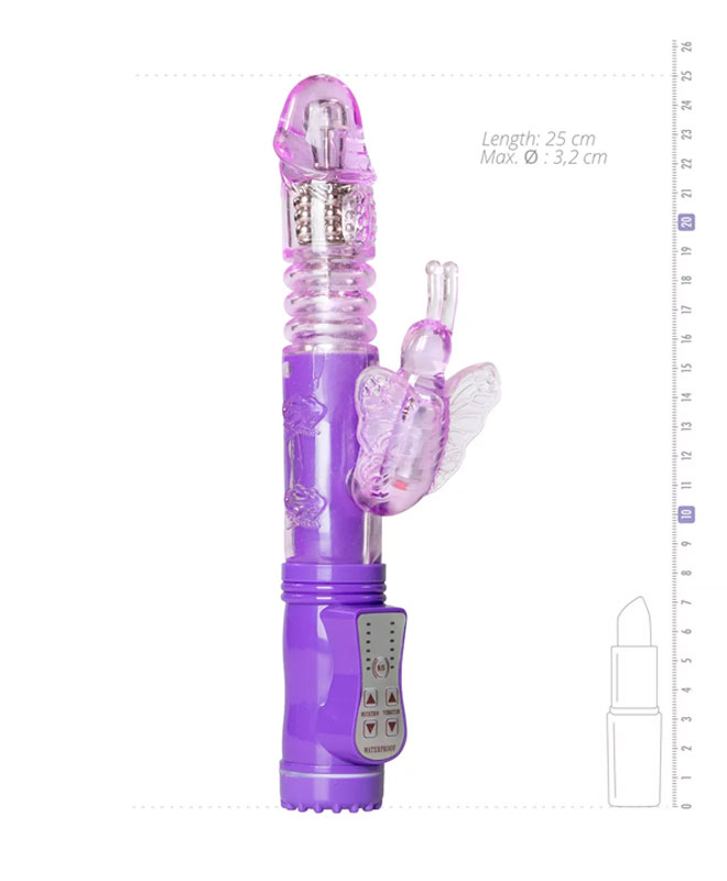 Skaftet til Rabbit Vibrator gir fantastiske, orgasmiske følelser, mens den vibrerende sommerfuglen gleder klitoris for fantastiske resultater. Vibratoren er vanntett og ftalatfri.