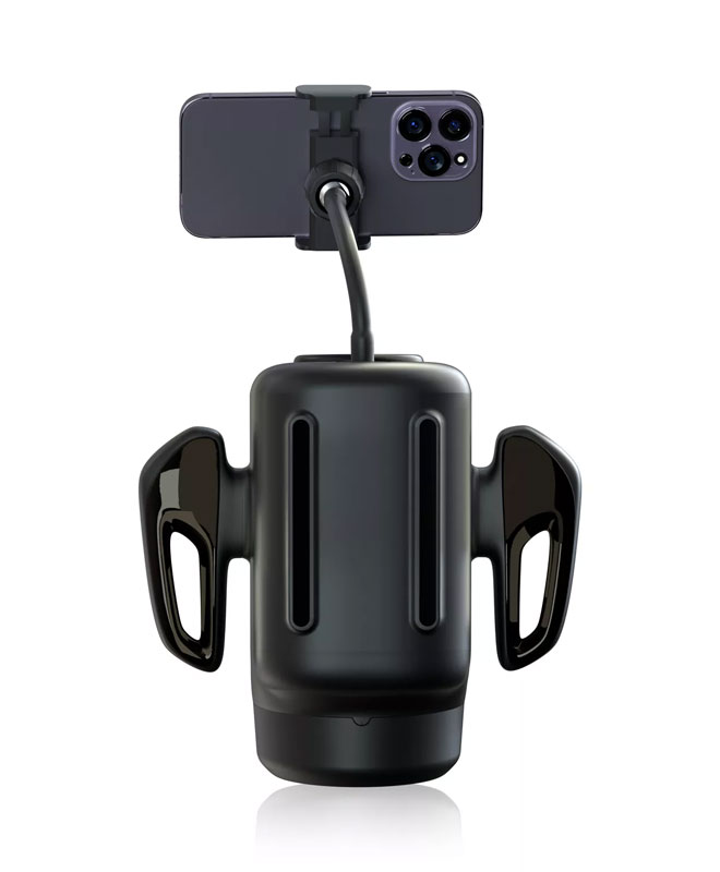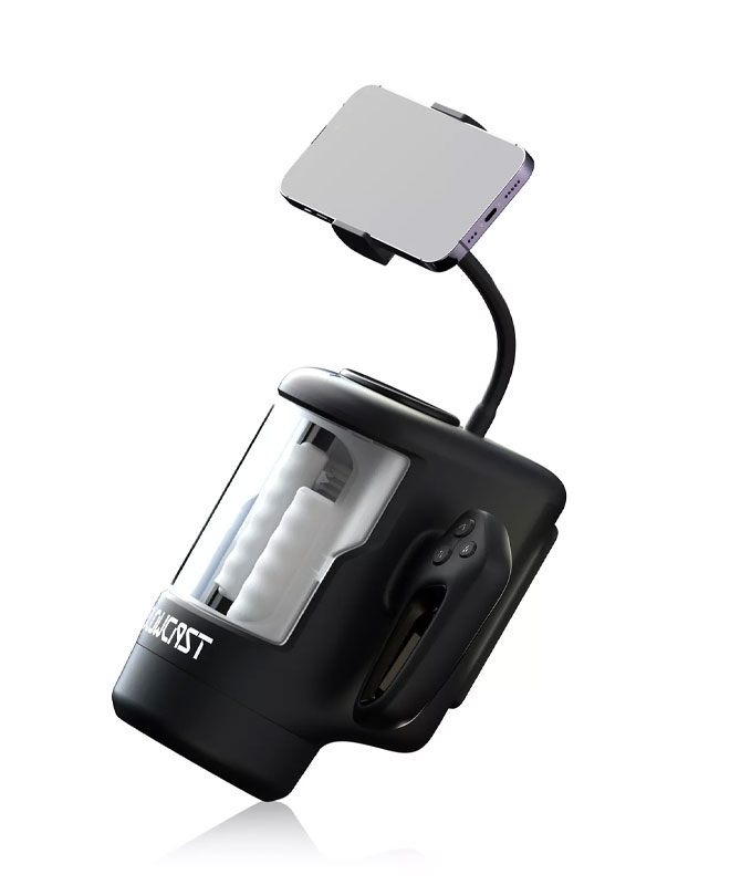 Med en unik mobilholder kan du nyte håndfri glede mens du ser på frekke videoer, samtidig kan du utforske de forskjellige støt-, vibrerings- og oppvarmingsfunksjonene. Bli komfortabel, koble den til og gi etter for din nye favoritt «konsoll»! Vi anbefaler et vannbasert glidemiddel og leketøysrens for optimal bruk og vedlikehold.
