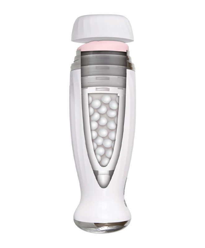 Kjenn på deilige vibrasjoner kombinert med en deilig teksturert hylse som skyver seg opp og ned penis!