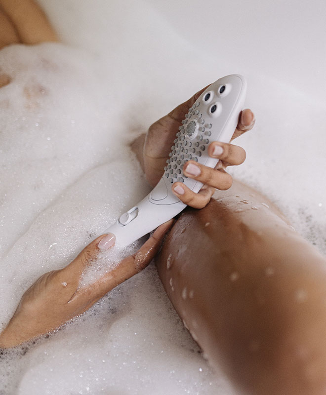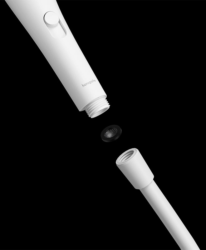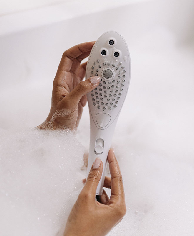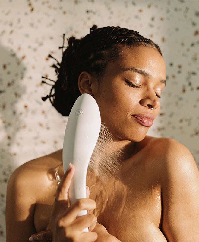Bytt enkelt ut ditt eksisterende dusjhode med Womanizer Wave ved å skru den på dusjslangen.