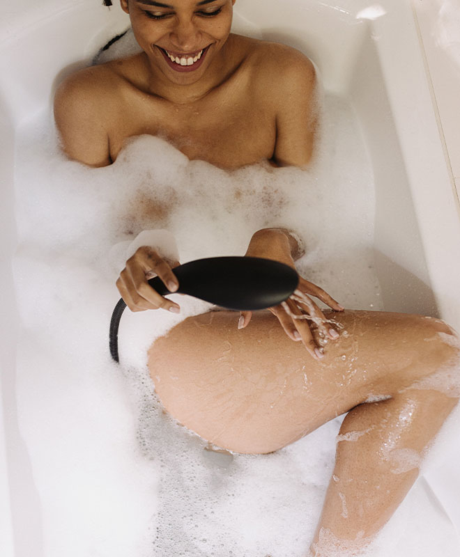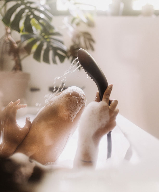 Bytt enkelt ut ditt eksisterende dusjhode med Womanizer Wave ved å skru den på dusjslangen.