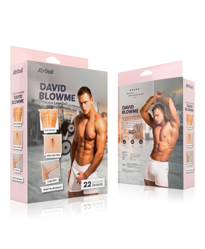 David er en dukke i naturlig størrelse med en stor oppblåsbar 22 cm lang dildo og en fristende anusåpning. David har en sexy sixpack og er alltid klar for deg.