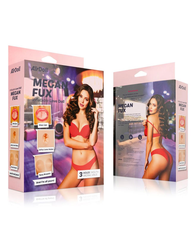 Megan er en dukke i naturlig størrelse som alltid er klar for deg. Den fleksible kroppen hennes kan settes i alle posisjoner. Megan har tre fristende hull: vagina, anus og munn, så det er alltid ett som vil tilfredsstille dine ønsker!