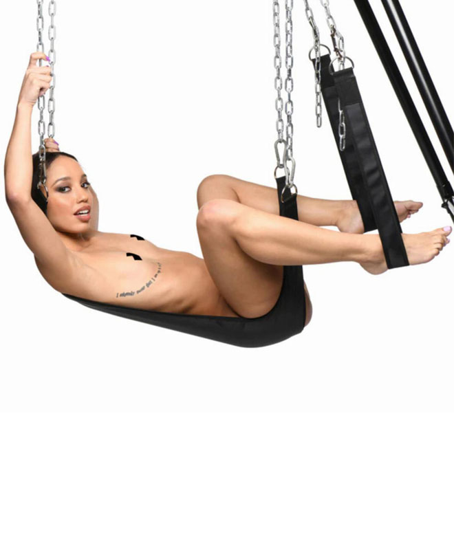 Den er lett, laget av vegansk materiale og er veldig lett å rengjøre. Kast husken og benløkkene i vaskemaskinen din! Med en vektkapasitet på opptil 300 kg er dette husken for ALLE som vil teste nye stillinger og utforske sine villeste sexfantasier.