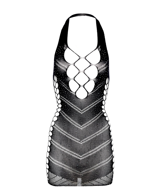 Wow! Denne uimotståelige kjolen fra Christine er dekket med skimrende glitter og lekker snøring som gir en dristig og glamorøs look. De sexy utsnittene pirrer og overlater lite til fantasien, mens det elastiske materialet former seg etter kroppen din for en flatterende og komfortabel passform. Bruk den på byen eller til neste datenight og kos deg!
