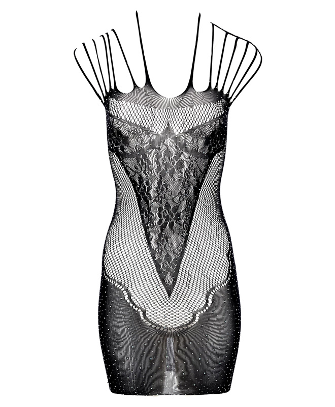 Et antrekk som gir det lille ekstra! Denne uimotståelige kjolen fra Christine er dekket med skimrende glitter - perfekt når du ønsker å skille deg ut! Kjolen er delvis gjennomsiktig og overlater pent lite til fantasien. Det elastiske materialet klemmer og smigrer kurvene, mens utringningen viser frem brystene på aller beste måte.