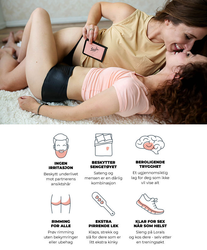 Lorals gir deg tryggheten til å si ja med entusiasme! Du kan nyte din partners tunge uansett hvor og når, selv etter en heftig treningsøkt! Mensen? Ikke noe problem! Irriterende skjegg? De plagsomme hårene dempes effektiv av Lorals. Sjenert eller usikker på egen kropp? Lorals fremhever dine mest sensuelle kurver samtidig som du slipper å føle deg helt naken.