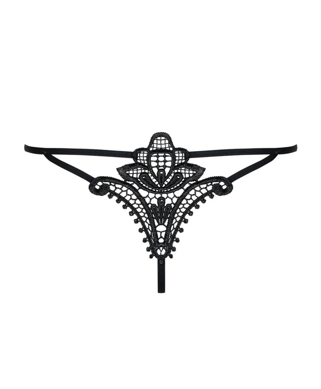 Wow! Denne G-strengen fra Obsessive kombinerer delikat svart blondebroderi med en frekk, minimalistisk passform. Stoffet kjennes mykt mot huden, mens de tynne stroppene rammer inn hoftene på en sexy og elegant måte. Broderiet bak gir et ekstra blikkfang, detaljert, dristig og skapt for oppmerksomhet.