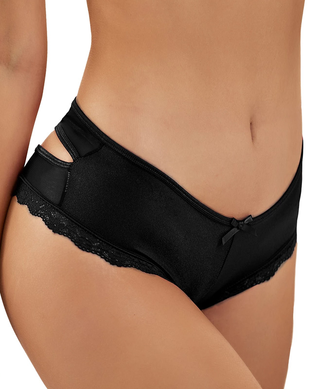 Denne frekke hipstertrusen fra Christine er lagd i myk og elastisk sateng som føles utrolig deilig ut mot huden. På rumpa er det lekre stroppedetaljer som gir deg en ekstra sexy look. Behagelig og overlegen passform.