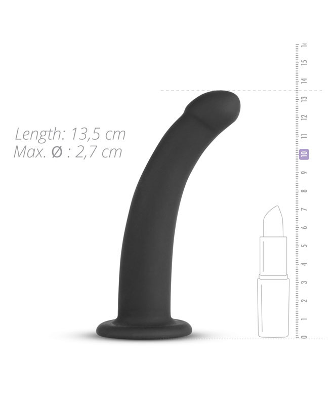 Den buede dildoen er ca. 12 cm lang og 2,7 cm i diameter, perfekt størrelse for både nybegynnere og viderekomne. Stroppene tilpasses enkelt og passer hoftestørrelser opptil 110 cm. Kombinasjonen av nylon og silikon gir god komfort og stabilitet når det trengs. Settet består av både dildo og harness, klart til bruk rett ut av esken.