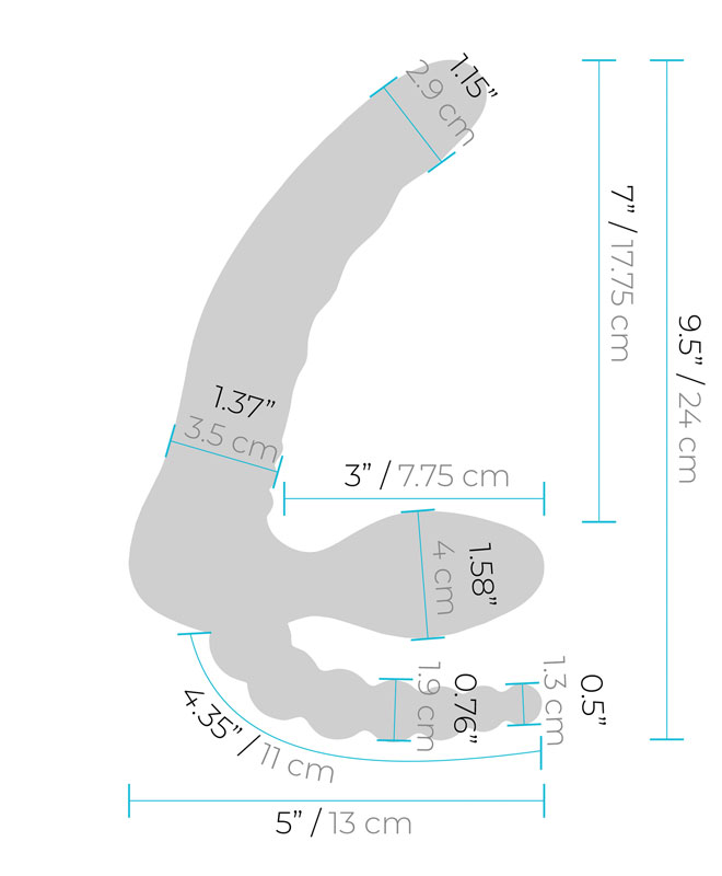 Den innførbare delen holdes på plass ved hjelp av bekkenbunnsmusklene; klem til og kjenn at det myke hodet masserer g-punktet ditt for utrolige intense opplevelser! Basen er teksturert for å stimulere klitoris samtidig som du penetrerer partneren din med den lengre enden av leketøyet.