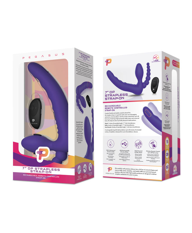 Ta penetreringen til intense, nye nivåer med Pegasus - en strapless vibrerende strap-on som tilbyr dobbel penetrering og heftige vibrasjoner!