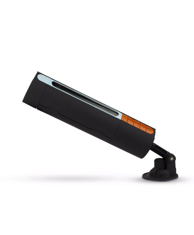 Denne masturbatoren leveres med en spesialholder med sugekopp: på denne måten kan du nyte den håndfri og plassere masturbatoren akkurat der du vil ha den. Den kan lades raskt opp med den medfølgende USB-kabelen.