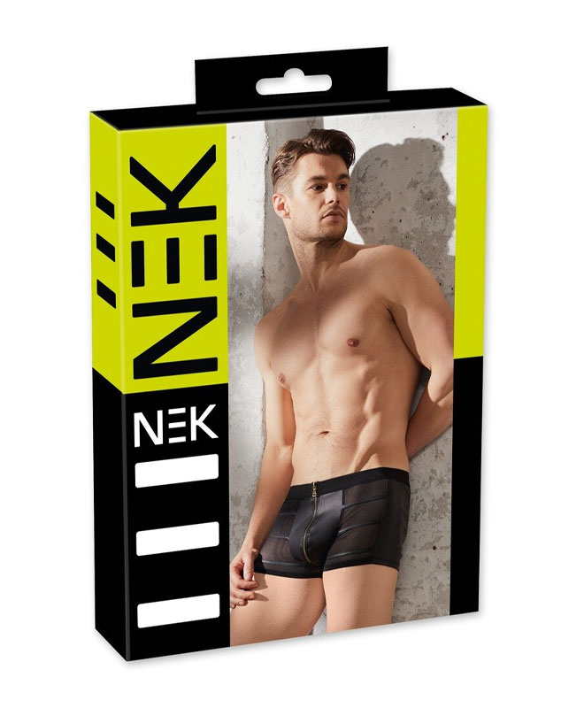 Sort netting, stram silhuett og en glidelås som gjør alt litt mer spennende. Disse boksershortsene er laget for menn som liker undertøy som viser akkurat nok og får kroppen til å se hetere ut uten at du må gjøre noe. Nettingen legger seg tett over huden og gir en pirrende effekt som merkes både av deg og den som ser på.