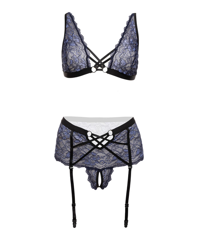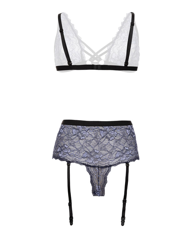 Wow! Endelig et undertøysett som er både komfortabelt og som også ser sinnssykt sexy ut. Dette forførende settet har lekne stroppedetaljer som pirrer sansene. Det myke, tofargede blondestoffet smigrer hver eneste kurve på kroppen din, mens trekantskålene gir komfortabel støtte uansett bystestørrelse. Stroppene kan enkelt justeres, hipstertrusene har høy midje for optimal passform og selvfølgelig åpning i skrittet for enkel tilgang.