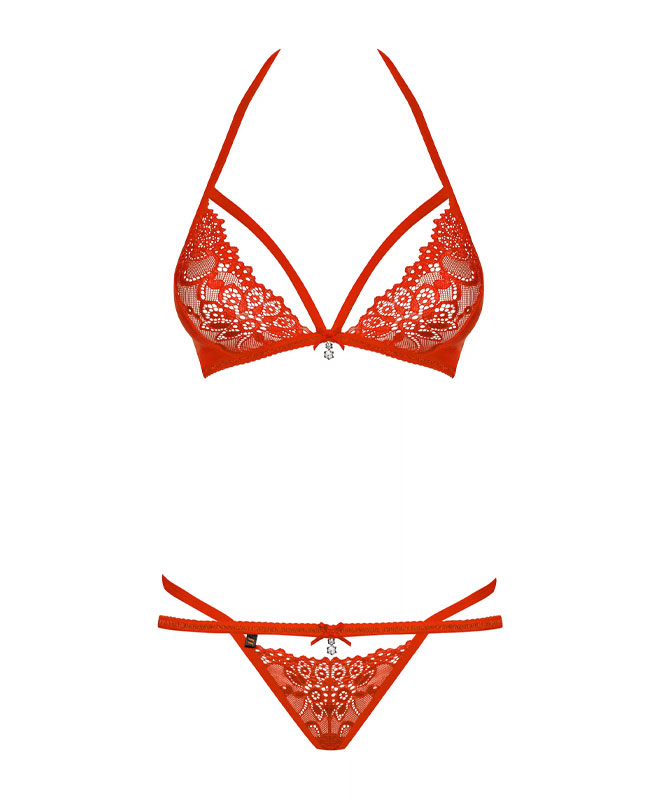 Wow! Dette settet er for deg som virkelig ønsker å vise frem alt du har å by på. Sexy blonder og myke stropper gjør dette settet helt utrolig å ha på seg, og doble stropper over brystene viser frem puppene dine på en helt utrolig måte.