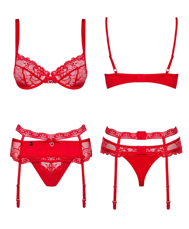 Obsessive har gjort det igjen! Dette sexy undertøysettet fra Heartina er en sikker vinner. Settet har en BH i blonder med spiler, tykke skulderstropper og hempelukking i ryggen.