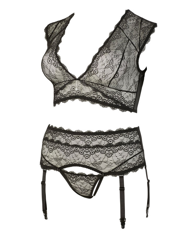 Undertøysett Med Sorte Blonder - Cottelli Collection Plus